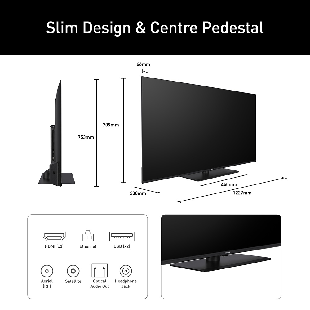 • Screen Size: 55″ 139 cm diagonal
